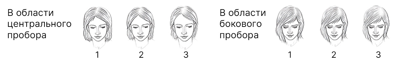 Лёгкое истончение волос в центральной зоне. Пробор становится шире, но лобная линия остаётся прежней.